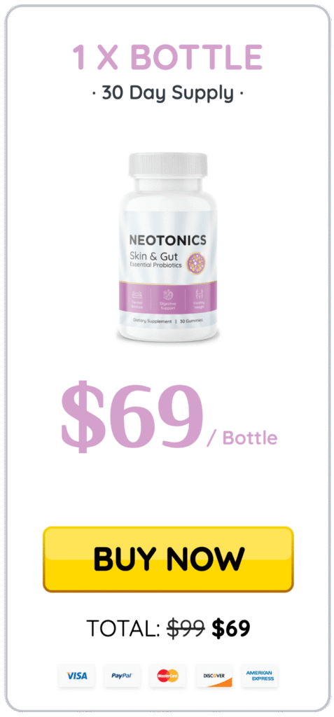 Made with 100% natural, non-GMO, and gluten-free ingredients, Neotonics contains no harmful chemicals, fillers, or stimulants. It’s a safe, non-habit-forming way to achieve lasting skin and gut transformation.